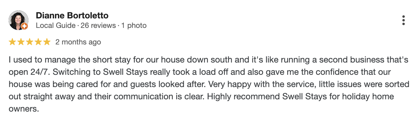 All guest payments are processed by Swell Stays. Owners are paid monthly.